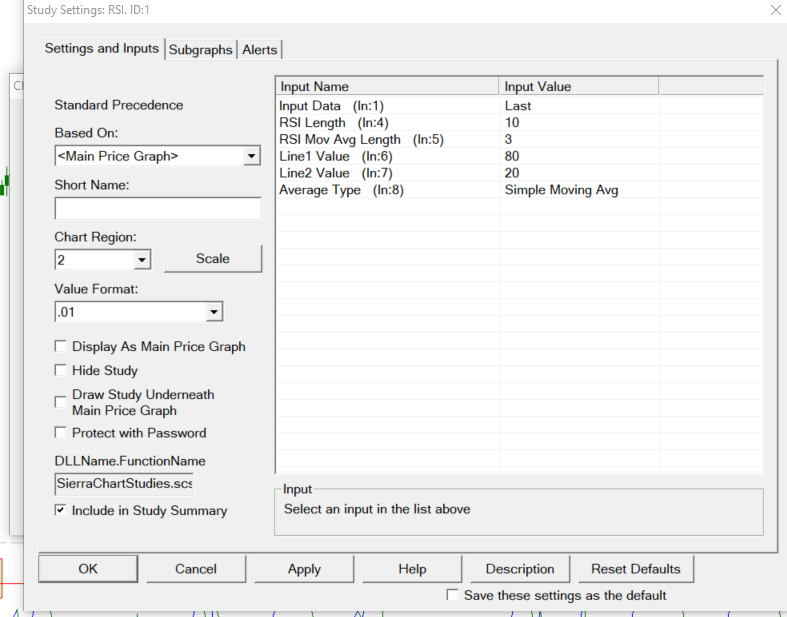 Refer to this section here about this: http://www.sierrachart.com/index.php?page=doc/ChartStudies.html#ResolvingStudyDifferences We recommend trying different Moving Average types (Average Type input). Refer to the documentation here: RSI Sierra Chart Support - Engineering Level Your definitive source for support. Other responses are from users. Try to keep your questions brief and to the point. Be aware of support policy: https://www.sierrachart.com/index.php?l=PostingInformation.php#GeneralInformation For the most reliable, advanced, and zero cost futures order routing, *change* to the Teton service: Sierra Chart Teton Futures Order Routing Date Time Of Last Edit: 2018-02-23 18:04:01
