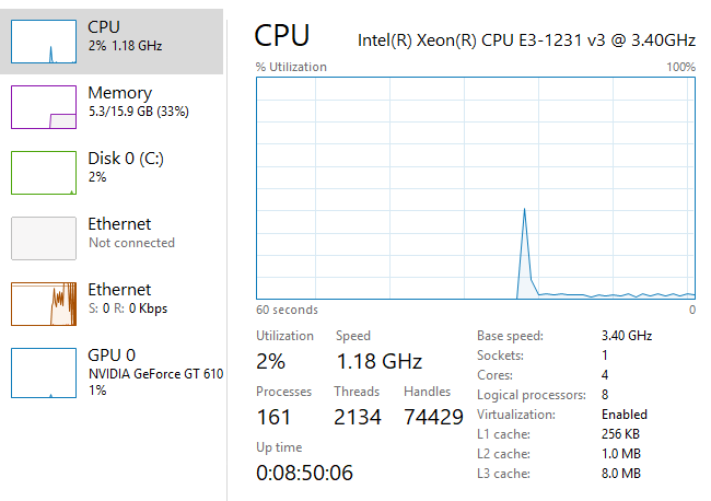 It is lagging approx. 10 to 20 seconds. Sometimes all charts completely stop with message: Waiting to download historical data. Besides that I deleted all data (I use only four last emini futures symbols) and let Sierra downloads them as a brand new. Even downloading historical tick data is very slow. I had to wait to download 2 months of Mar NQ future for over 1 hour. I am pretty sure it isn't caused by my internet connection, please check screenshot I made few minutes ago (my connection is cable with more then 50Mbps). I use latest version 1705 of Sierra, my OS is Windows 10. Performance of my computer wouldn't be issue as well (second screenshot). What do you suggest? |