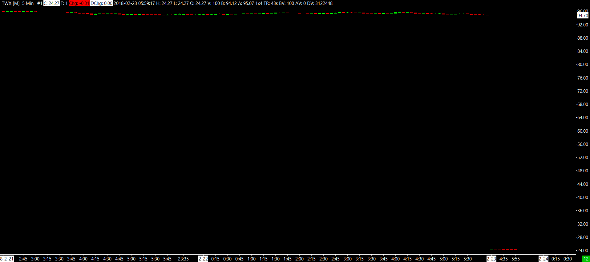 I think the price for a few symbols (TWX, SCHW) is incorrectly built on a main price graph, see attached log and screenshot.