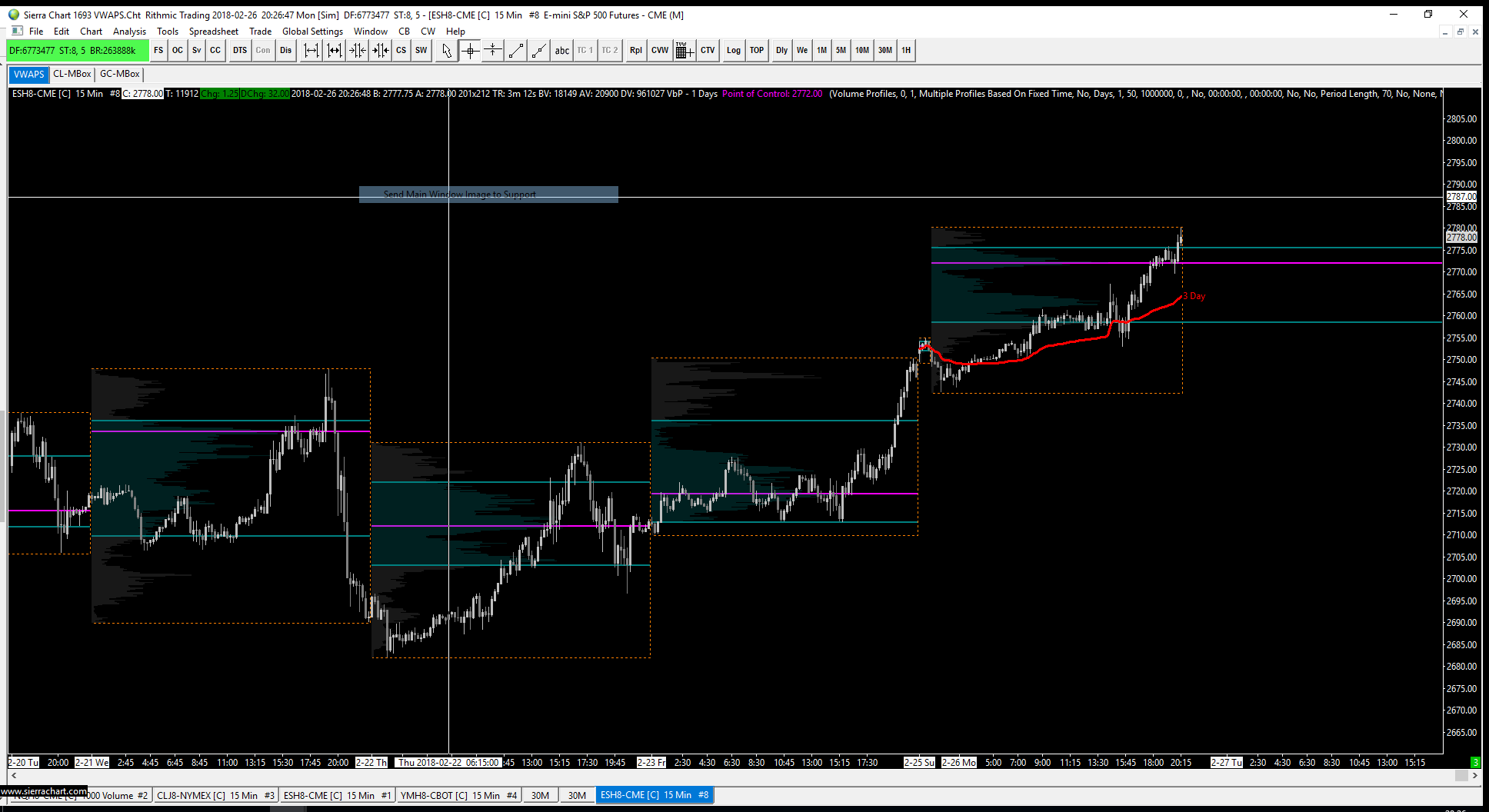 The solution is you need to increase the Number of Days to Calculate to at least 5. Preferably 7. Also update to the latest version of Sierra Chart: Software Download: Fast Update Sierra Chart Support - Engineering Level Your definitive source for support. Other responses are from users. Try to keep your questions brief and to the point. Be aware of support policy: https://www.sierrachart.com/index.php?l=PostingInformation.php#GeneralInformation For the most reliable, advanced, and zero cost futures order routing, *change* to the Teton service: Sierra Chart Teton Futures Order Routing Date Time Of Last Edit: 2018-02-27 01:53:34