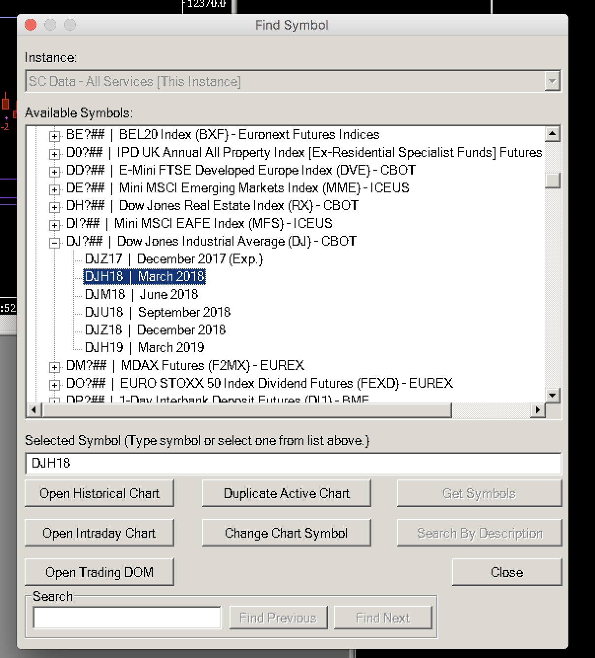 Yes you do need the CBOT exchange, but the symbol is going to start with YM and not DJ. And do you have a trading account? And who is your futures broker? Sierra Chart Support - Engineering Level Your definitive source for support. Other responses are from users. Try to keep your questions brief and to the point. Be aware of support policy: https://www.sierrachart.com/index.php?l=PostingInformation.php#GeneralInformation For the most reliable, advanced, and zero cost futures order routing, *change* to the Teton service: Sierra Chart Teton Futures Order Routing |