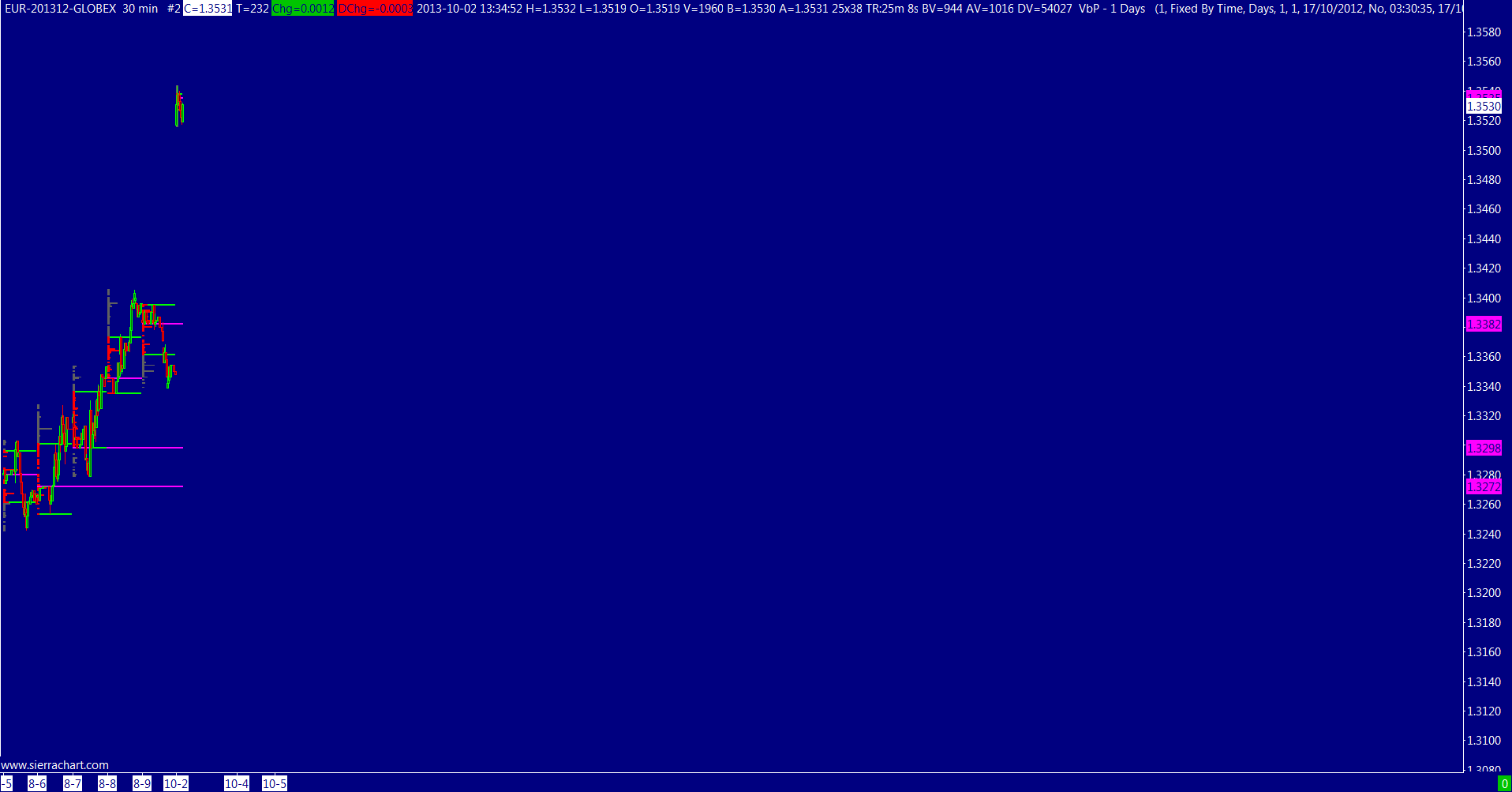 Ho, It doesn't work. I check all your topic but it miss some datas. For example, on eur fut dec 13, I can't download the data between august 9 and october 2! Thank you for helping me! Software version: 1029 | 2013-10-03 07:21:38 Usage end date: 2013-11-02 | 2013-10-03 07:21:38 Sierra Chart Historical Data Service is included. | 2013-10-03 07:21:38 Active service: Interactive Brokers | 2013-10-03 07:21:38 Time Zone: +02:00:00 (CET+01CEST+01,M3.5.0/02:00,M10.5.0/03:00) | 2013-10-03 07:21:38 2013-10-03 07:21:38 Local computer clock time | 2013-10-03 07:21:38 2013-10-03 05:21:38 GMT time | 2013-10-03 07:21:38 2013-10-03 07:21:38 Time zone adjusted time | 2013-10-03 07:21:38 Time difference to server time: 3 seconds. | 2013-10-03 07:21:38 Program path: C:\SierraChart\ | 2013-10-03 07:21:38 Data Files path: C:\SierraChart\Data\ | 2013-10-03 07:21:38 OS Version Number: 6.1 | 2013-10-03 07:21:38 Currently no data in file to display. Will start historical data download and real-time updates. File: C:\SierraChart\Data\CAC40-201310-MONEP.scid | 2013-10-03 07:21:45 Currently no data in file to display. Will start historical data download and real-time updates. File: C:\SierraChart\Data\CAC40-201310-MONEP.scid | 2013-10-03 07:21:45 Currently no data in file to display. Will start historical data download and real-time updates. File: C:\SierraChart\Data\CAC40-201310-MONEP.scid | 2013-10-03 07:21:45 Currently no data in file to display. Will start historical data download and real-time updates. File: C:\SierraChart\Data\CAC40-201310-MONEP.scid | 2013-10-03 07:21:45 Currently no data in file to display. Will start historical data download and real-time updates. File: C:\SierraChart\Data\CAC40-201310-MONEP.scid | 2013-10-03 07:21:45 Currently no data in file to display. Will start historical data download and real-time updates. File: C:\SierraChart\Data\CAC40-201310-MONEP.scid | 2013-10-03 07:21:45 Currently no data in file to display. Will start historical data download and real-time updates. File: C:\SierraChart\Data\CAC40-201310-MONEP.scid | 2013-10-03 07:21:45 Currently no data in file to display. Will start historical data download and real-time updates. File: C:\SierraChart\Data\CAC40-201310-MONEP.scid | 2013-10-03 07:21:45 Currently no data in file to display. Will start historical data download and real-time updates. File: C:\SierraChart\Data\CAC40-201310-MONEP.scid | 2013-10-03 07:21:45 Currently no data in file to display. Will start historical data download and real-time updates. File: C:\SierraChart\Data\CAC40-201310-MONEP.scid | 2013-10-03 07:21:45 Currently no data in file to display. Will start historical data download and real-time updates. File: C:\SierraChart\Data\CAC40-201310-MONEP.scid | 2013-10-03 07:21:45 Currently no data in file to display. Will start historical data download and real-time updates. File: C:\SierraChart\Data\CAC40-201310-MONEP.scid | 2013-10-03 07:21:45 Currently no data in file to display. Will start historical data download and real-time updates. File: C:\SierraChart\Data\CAC40-201310-MONEP.scid | 2013-10-03 07:21:45 Currently no data in file to display. Will start historical data download and real-time updates. File: C:\SierraChart\Data\CAC40-201310-MONEP.scid | 2013-10-03 07:21:45 Currently no data in file to display. Will start historical data download and real-time updates. File: C:\SierraChart\Data\CAC40-201310-MONEP.scid | 2013-10-03 07:21:45 Currently no data in file to display. Will start historical data download and real-time updates. File: C:\SierraChart\Data\CAC40-201310-MONEP.scid | 2013-10-03 07:21:45 Currently no data in file to display. Will start historical data download and real-time updates. File: C:\SierraChart\Data\CAC40-201310-MONEP.scid | 2013-10-03 07:21:45 Currently no data in file to display. Will start historical data download and real-time updates. File: C:\SierraChart\Data\CAC40-201310-MONEP.scid | 2013-10-03 07:21:47 Connecting to IB data and trade server: 127.0.0.1. Port 7496. | 2013-10-03 07:21:47 The network socket is connected. | 2013-10-03 07:21:47 Socket connected to TWS. Sending client version: 62. Waiting for acceptance. | 2013-10-03 07:21:47 HD Request # 2 - Downloading Historical Daily chart data for ^EURUSD. Starting date: 2013-10-01. Service: ddf | 2013-10-03 07:21:47 HD Request # 2 - Requesting historical Daily data for ^EURUSD starting at 2013-09-30 | 2013-10-03 07:21:47 HD Request # 3 - Downloading Intraday chart data for $TICK to the file $TICK.scid. Service: ddf | 2013-10-03 07:21:47 HD Request # 3 - Starting date and time in file: 2013-10-02 17:22:56.0 | 2013-10-03 07:21:47 HD Request # 3 - Using server: ds4.sierracharts.com port 10049 | 2013-10-03 07:21:47 TWS server version: 69 | 2013-10-03 07:21:47 IB: Connected. | 2013-10-03 07:21:47 IB Account information received. | 2013-10-03 07:21:47 Connected to IB Live account. | 2013-10-03 07:21:47 Next valid order ID: 1 | 2013-10-03 07:21:47 Message from IB: La connection de données de marché est OK:usfuture. IB Error Code: 2104. Request ID: -1. | 2013-10-03 07:21:47 Message from IB: La connection de données de marché est OK:eurofarm. IB Error Code: 2104. Request ID: -1. | 2013-10-03 07:21:47 Message from IB: La connection de données de marché est OK:cashfarm. IB Error Code: 2104. Request ID: -1. | 2013-10-03 07:21:47 Resolved address ds4.sierracharts.com to IP 204.11.49.26 | 2013-10-03 07:21:47 Message from IB: La connection de données de marché est OK:usfarm. IB Error Code: 2104. Request ID: -1. | 2013-10-03 07:21:47 Message from IB: La connection de données HMDS est OK:ilhmds. IB Error Code: 2106. Request ID: -1. | 2013-10-03 07:21:47 Message from IB: La connection de données HMDS est OK:euhmds. IB Error Code: 2106. Request ID: -1. | 2013-10-03 07:21:47 Message from IB: La connection de données HMDS est OK:cashhmds. IB Error Code: 2106. Request ID: -1. | 2013-10-03 07:21:47 Message from IB: La connection de données HMDS est OK:ushmds. IB Error Code: 2106. R