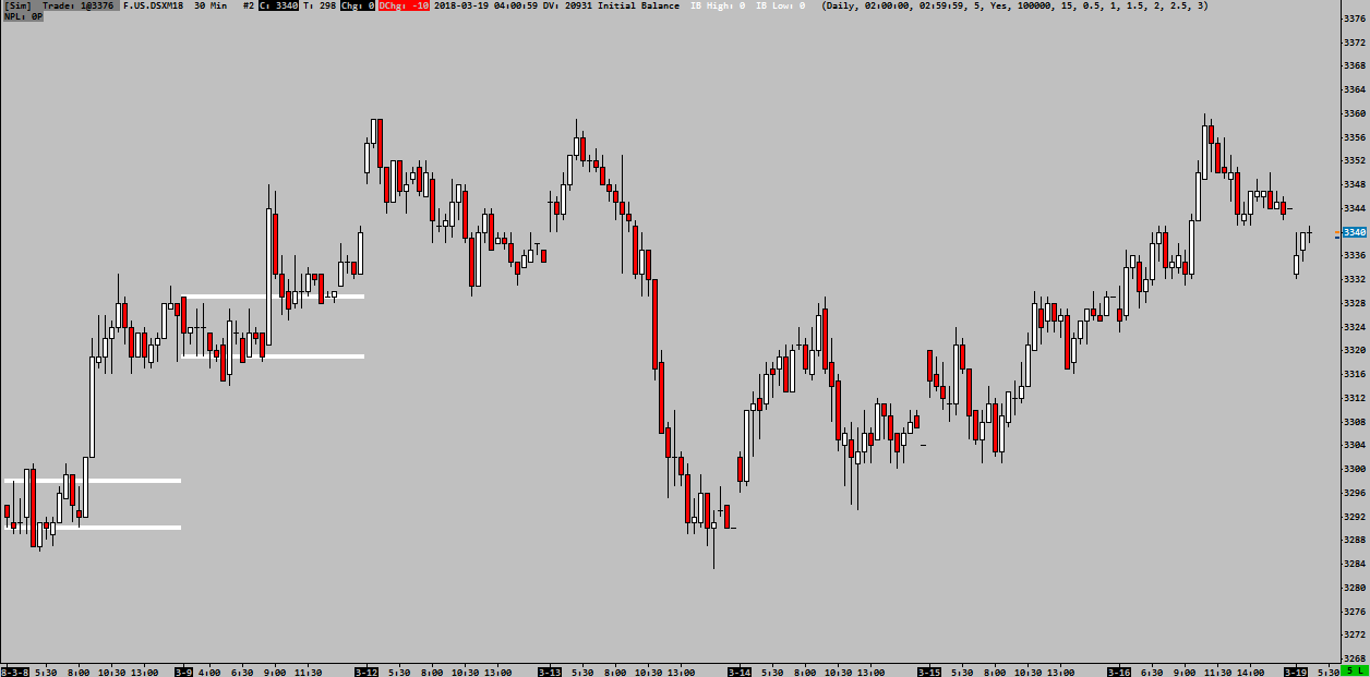 Thank you, I double-checked the documentation and the settings and seemingly my settings are fine. I have checked the recent days on the FESX (F.US.DSXM18) and the Initial Balance related values on the Chart Values window are zero. I can get non-zero values when I scroll the chart back to a day where the IB levels are actually displayed. I have just tried other symbols, like the Gold (F.US.GCEJ18), and the IB study works there perfectly. The problem exists on EUREX products only - I tried both the CQG feed and the real-time SC data (for example FXM18 for FESX). Additionally, there is a problem with a Custom study I use (MurreyMath) too: there is a display error what exists on EUREX symbols only but other non-Eurex products work fine. Also when I roll back to a previous version, the problem remains the same - similar to the Initial Balance study problem. This problem first came up when using 1716, but before the problem, I already used the same 1716 SC without any issue. So maybe these issues (both Initial Balance Study and my custom study) are somehow related/affected by the data from this specific exchange (Eurex). Can you please advise? |