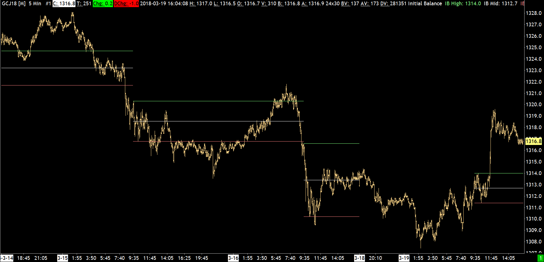 We see no problem with this study: http://www.sierrachart.com/image.php?Image=152148985626.png We recommend reviewing each of the Input settings. They are documented here: Initial Balance Use the Chart Values window to check the values for those recent days to see if you see nonzero values for the Initial Balance lines, or if they are just actually 0: Chart Drawing Tools: Chart Values/Crosshair Sierra Chart Support - Engineering Level Your definitive source for support. Other responses are from users. Try to keep your questions brief and to the point. Be aware of support policy: https://www.sierrachart.com/index.php?l=PostingInformation.php#GeneralInformation For the most reliable, advanced, and zero cost futures order routing, *change* to the Teton service: Sierra Chart Teton Futures Order Routing |