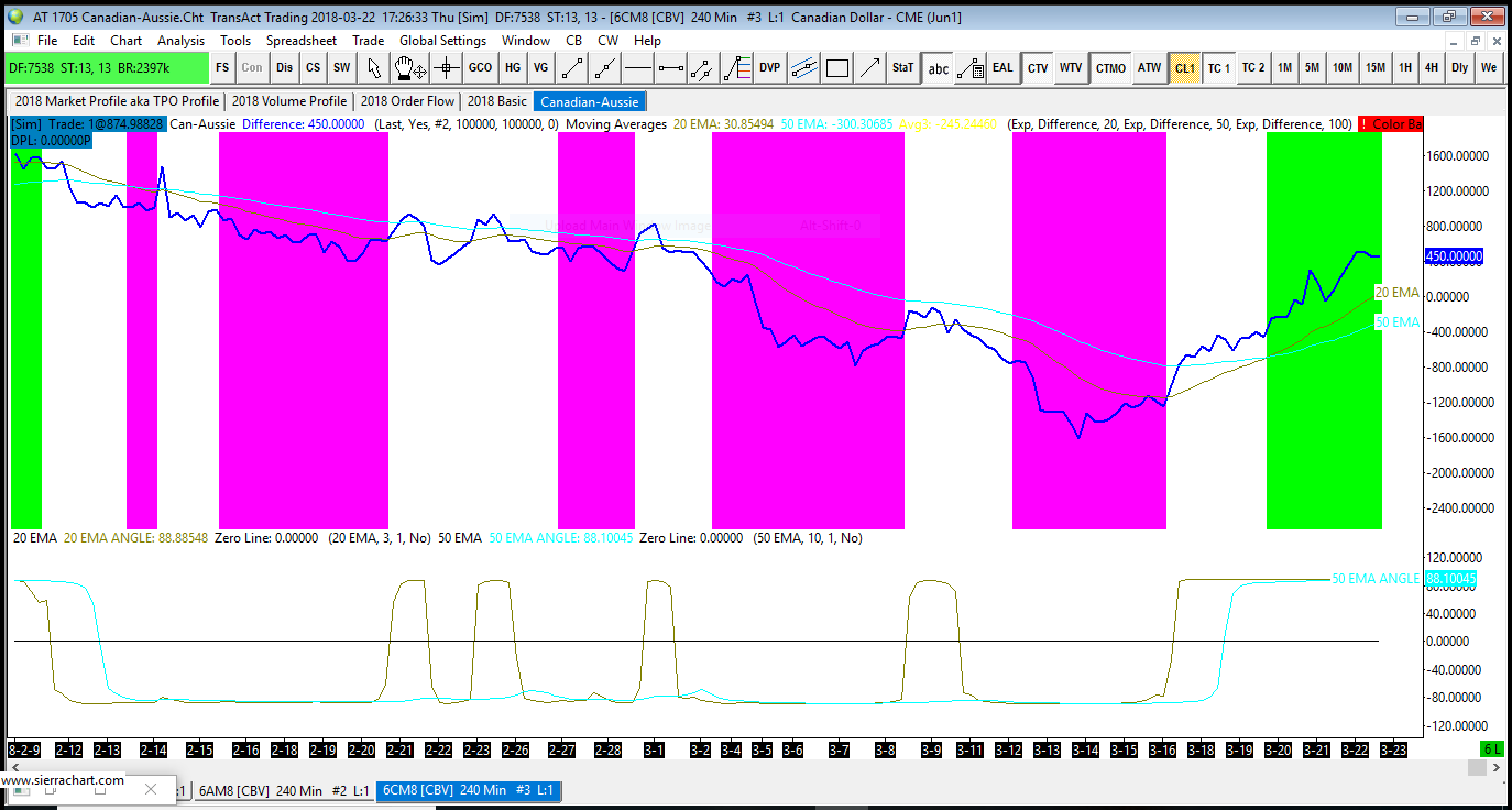 I am trying to do an angle study. It does not appear to be charting correctly. I have 2 angle studies on chart, each charting angles of the 2 moving averages on the chart.