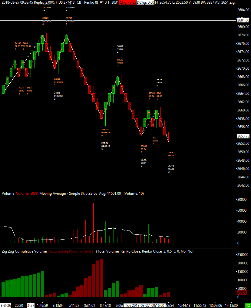 Im using a RENKO chart through CHART--->Chart Settings etc... For example using Mode 2 with a 1 bar reversal and hi/lo (in settings) both set to RENKO CLOSE When "Calculate new values on bar close" is set to YES, Zig Zag displays CORRECTLY (this doesnt show activity at current price and have to wait for bar to close) When "Calculate new values on bar close" is set to NO (i.e. realtime @ price) the Zig Zag will always close on the High of the next bar reversal, NOT the RENKO Close of the last Renko up bar . HOWEVER, when I RECALCULATE the chart it corrects this error but this is very annoying especially if market is moving fast or you forget hence the information is then meaningless. Also, couldnt upload charts via SC as this wasnt possible when capturing the error in 2 images so apologies for that. Cheers |