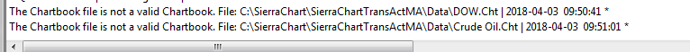 That Chartbook file definitely is not valid. We recommend they use the file sharing feature here to send you the file: File Sharing Sierra Chart Support - Engineering Level Your definitive source for support. Other responses are from users. Try to keep your questions brief and to the point. Be aware of support policy: https://www.sierrachart.com/index.php?l=PostingInformation.php#GeneralInformation For the most reliable, advanced, and zero cost futures order routing, *change* to the Teton service: Sierra Chart Teton Futures Order Routing |