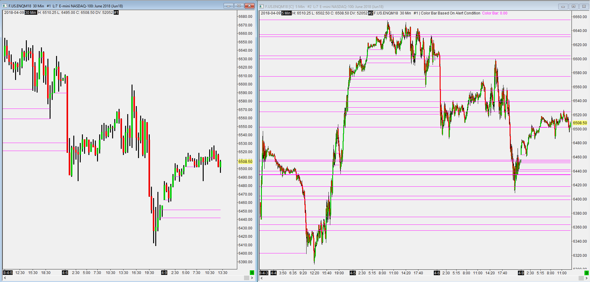 What I want to do: 1. Create a Color Bar Based on Alert Condition 2. For Draw Type, I need a line on the Open that extends to the right until it is intersected Would also be great if this was something that can be plotted on another chart using something like Study/Price Overlay. Can anyone please tell me how this can be achieved? |