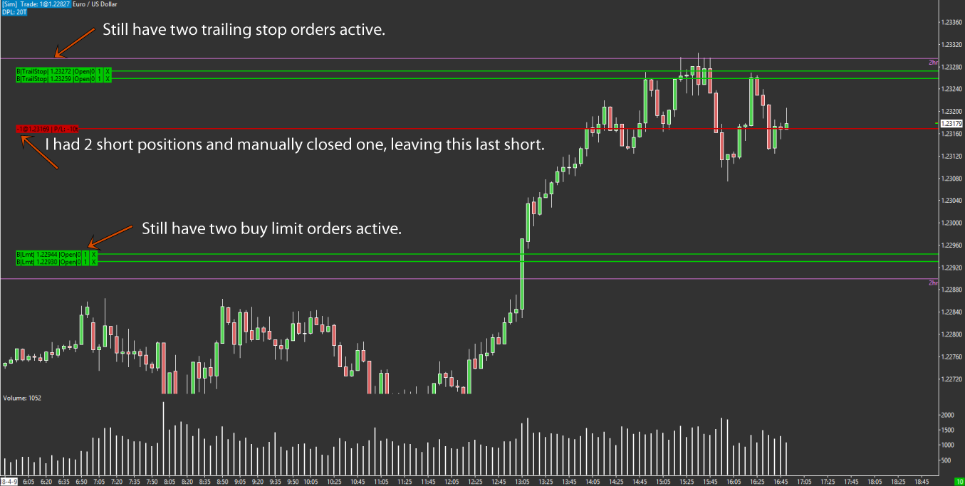 Lets say the market is trending down and I have five open short positions which I have entered at different locations. I end up with a cluster of stops and a cluster of targets but I dont know which one belongs to which trade. How do I manually close these trades one by one as the downtrend continues so that my target and stop are removed automatically as well? I have tried to 'buy' into the downtrend and that will allo me to scale out but the stop and target remain. Date Time Of Last Edit: 2018-04-09 16:10:03