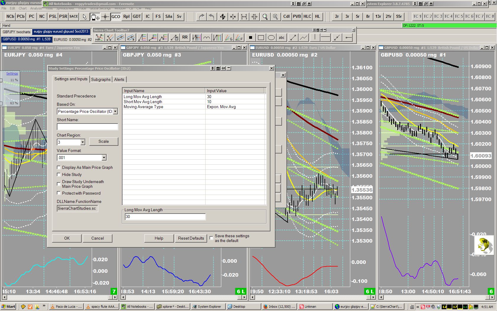 to reference other charts in the chartbook. I have GBPJPY, EURJPY, GBPUSD, EURUSD charts open in one chartbook, with Percent Price Change Oscillator in subchart windows, with one for each chart. I wish to have the PPC Oscillator for each instrument in each of the charts. How do I reference the other chart from the Study Settings window? P.S: Just found the price/study overlay help documentation, thx Date Time Of Last Edit: 2013-10-06 09:57:55