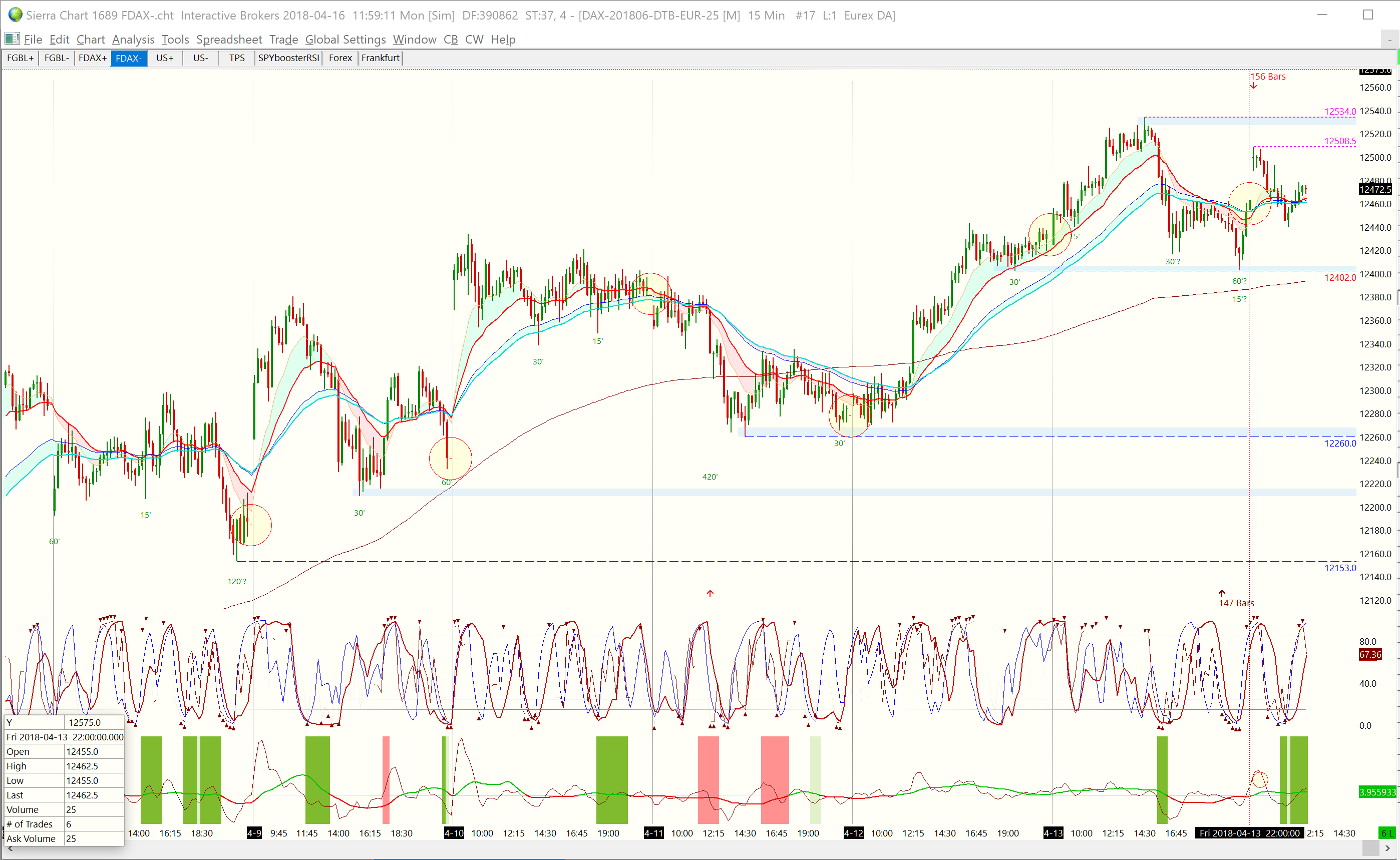 I trade the dax future on an intraday basis. DAX future trades from 08:00 until 22:00, however it there is also a final close (auction?) around 22:04. My session time settings are: 08:00 until 21:59:59, no evening session. In this way my last candle in eg. the 15 minutes chart starts at 21:45 and ends at 21:59:59. However, as a result of this configuration, I miss the final close that occurs around 22:04, and the daily close is not shown correctly in eg. the 15 minutes chart. Of course, I can reconfigure the session end time to 22:30 (or so), but then I get an extra candle in my chart with only one quote, which will affect my indicator values and render them useless ... How can I configure my charts such that the real close (which occurs around 22:04) is added to each last candle of the day, so the last candle in each timeframe reflects this real final close of the day, instead of the close at 22:00, without introducing an extra candle? Date Time Of Last Edit: 2018-04-16 10:03:09