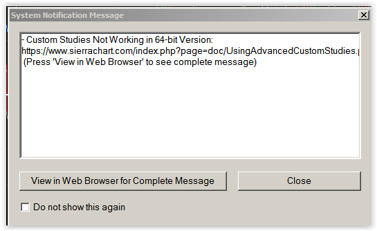 Cannot attach error message but it reads: Custom Studies Not Working in 64-bit version My DOM is not working right and chart prices do not match the DOM. If this persists I will have to call Optimus Futures and get set up with a different charting package. Tried downloading again several times but not working. How do I get this fixed? |
