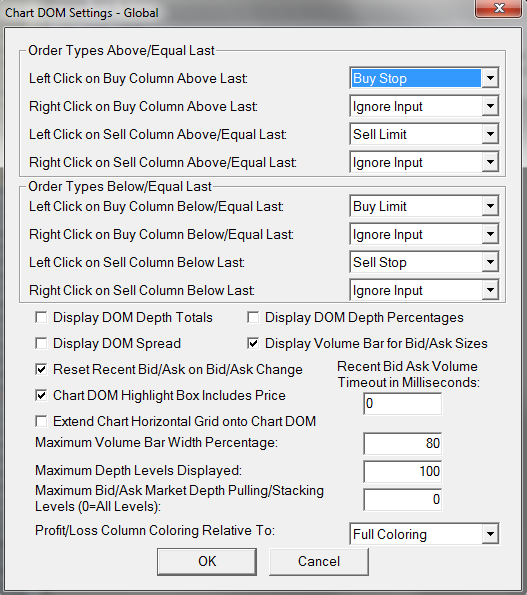 OK, this has to do with the Chart DOM configuration here: Global Trade Settings Windows: Chart DOM Settings Sierra Chart Support - Engineering Level Your definitive source for support. Other responses are from users. Try to keep your questions brief and to the point. Be aware of support policy: https://www.sierrachart.com/index.php?l=PostingInformation.php#GeneralInformation For the most reliable, advanced, and zero cost futures order routing, *change* to the Teton service: Sierra Chart Teton Futures Order Routing |