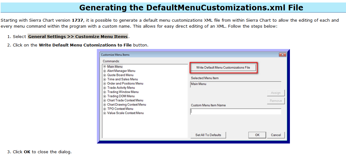 file uploaded (MenuCustomizations.xml), copied to the folder (C:\SierraChart), the problem remained.