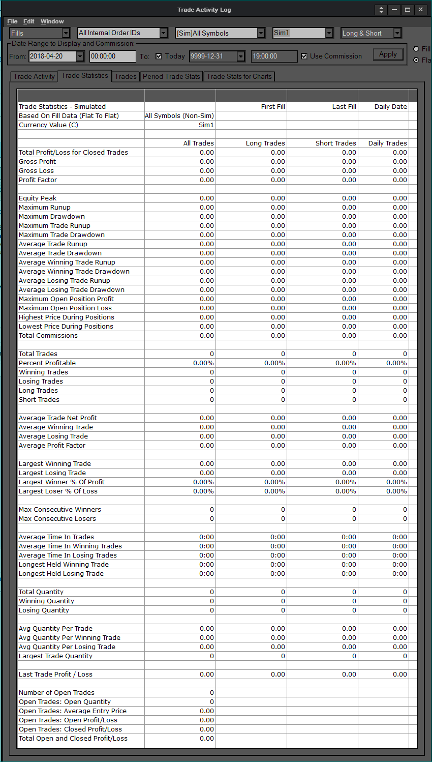 can not find SC trade activity to visualize trade performance like NT does:(I've looking anywhere and still can not do that.) GRAPHS: Cumulative Profit Daily Net Profit Distribution MAE MFE Monthly Net Profit Weekly Net Profit Are there similar features in SC for the above trade performance/statistic graphs? |