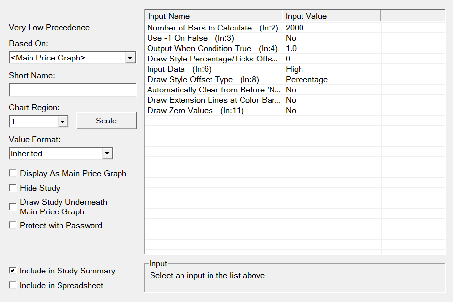 We think probably the best thing to do is to have a look at the Study Summary window. Refer to: Study Summary Window Sierra Chart Support - Engineering Level Your definitive source for support. Other responses are from users. Try to keep your questions brief and to the point. Be aware of support policy: https://www.sierrachart.com/index.php?l=PostingInformation.php#GeneralInformation For the most reliable, advanced, and zero cost futures order routing, *change* to the Teton service: Sierra Chart Teton Futures Order Routing |