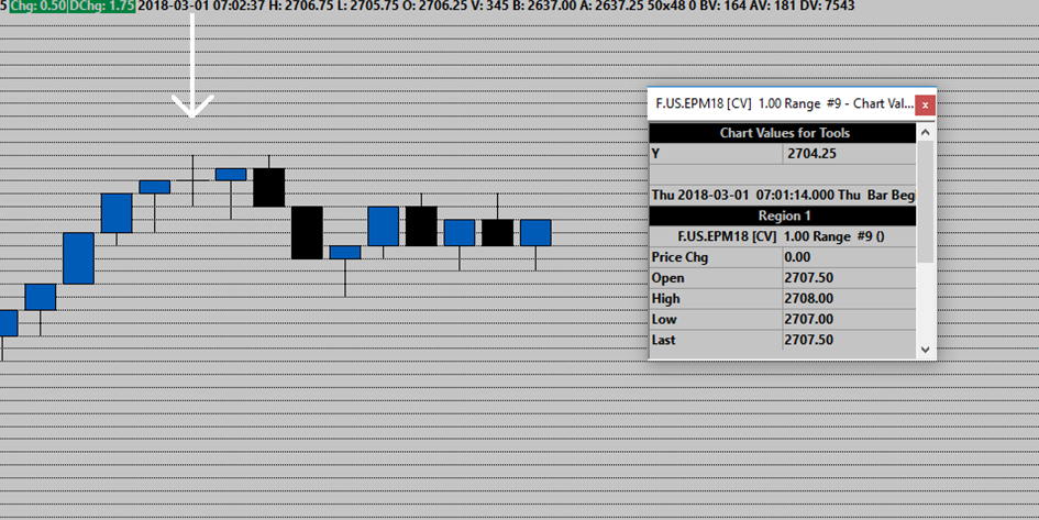 I've provided a screenshot. Here's the deal. Using these type of bars is nothing new to me. I recently switched data providers and am now using CQG WebAPI and this has to have something to do with it. Previously I was using Gain and never had this problem, ever. I'm using 4 tick range bars open=close like I always have. Once one of these bars closes the 'last' should always equal the high or low of the bar unless new bar on session start is checked which it isn't, nor are these bars that I mention at the start of the session. Now with this new provider I see instances where the last does not equal the high or low. In my screenshot I hovered over the bar to show the chart values. With this particular bar the high is 2708.00, Low 2707.00 and the last 2707.50, right in the middle. Would it make a difference if I use CQG Fix Trading? Maybe there's a setting for this data provider? Please advise. |