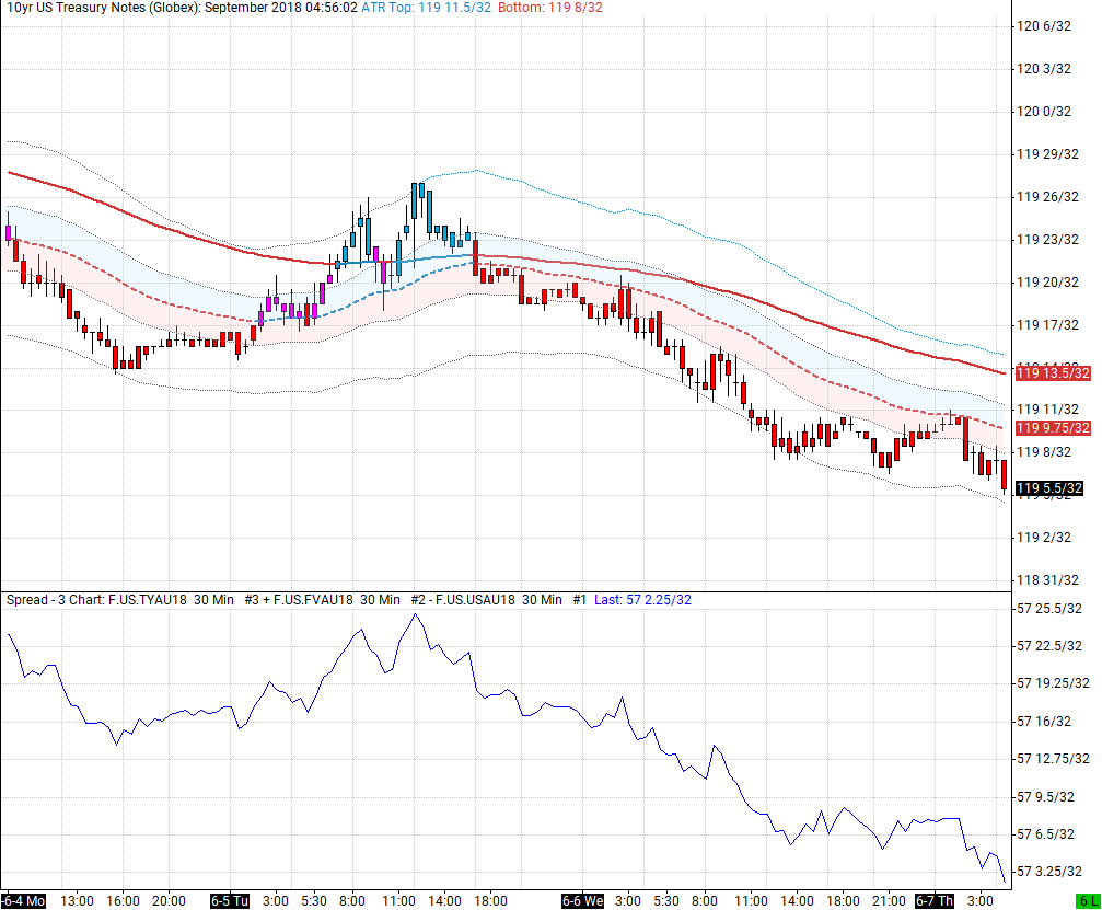 Using study "Spread - 3 Chart" I can create a Butterfly spread study to add to the price chart - in this case 5Y v 10Y v 30Y US Treasuries. It shows in Region 2 with normal description at top of chart showing the 3 instruments in the spread. Screenshot attached. If I then select on the "Spread 3 Chart" settings to "Display as Main Price Graph" as don't need to see the input charts, the chart appears but the description from the study does not. See screenshot with spread chart now called the 10Y chart as that was the original/base. I tried adding a custom name/description in the study settings under "Short Name" but this does not display either. Hence Butterfly chart is now incorrectly called 10Y chart. Summary - when using spread chart as main graph need correct description so that can tell what is being plotted. Either showing the 3 instruments or showing the short name (as may want to shorten the text with 3 instruments in one line, or show the ratio between the 3 instruments). Thanks. http://www.sierrachart.com/image.php?Image=1528361764112.png http://www.sierrachart.com/image.php?Image=1528361798748.png |
