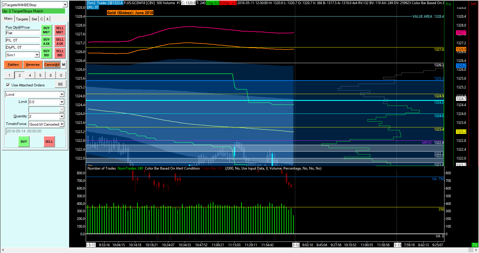 OK, this is exactly what I"m trying to accomplish with the number bars. I want them to be red if the bid volume is greater than the ask volume based on the cumulative delta chart - I still can't seem to figure this out. What's happening now is, the number of trades is still green, but as I pull the main graph down, those are red as they enter the area 2. I don't understand what the formula should be in the alerts to do this; but I do feel that I've setup everything else correctly. |