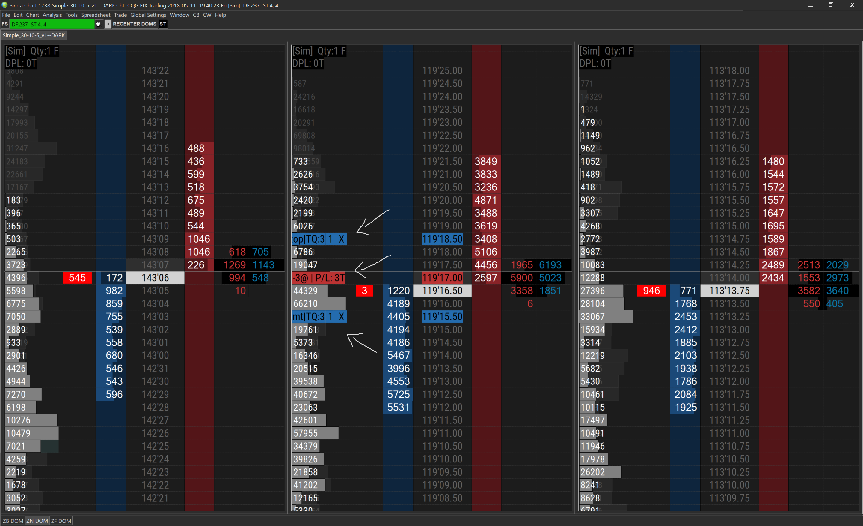 Is there a way to get the DOM order tabs to not cover the volume profile numbers? I pay attention to these numbers and when I'm in a trade I cannot see them. The only work around I've found is if I make the DOM's really wide, but this method compromises screen real-estate. Please advise? I've attached a screenshot for clarification. |