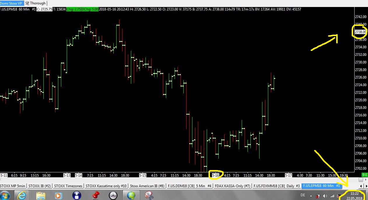 Yes, everything is set up correctly. I also double checked your instructional with the instructional Video I recieved from AMP and they are in accordance. However, when I checked, I started playing with the "Intraday Data Storage Time Unit"-Setting and set it to "1Tick". Subsequently I recieved an Error 112 in the Message Log (see attached file) which states in German that I lack free storage space. Could that be the root of the issue? (If so, is there a way to save the respective data on an external hard drive?) Yet, something is still confusing to me: How come the F.US.EPM18 does not show price movement in candlestick devolopment (however does so in the price tag on the right of the Chart), while the F.US.DDM18 is moving perfectly fine, although being connected to the same Data Feed and using the same computer for storage? |