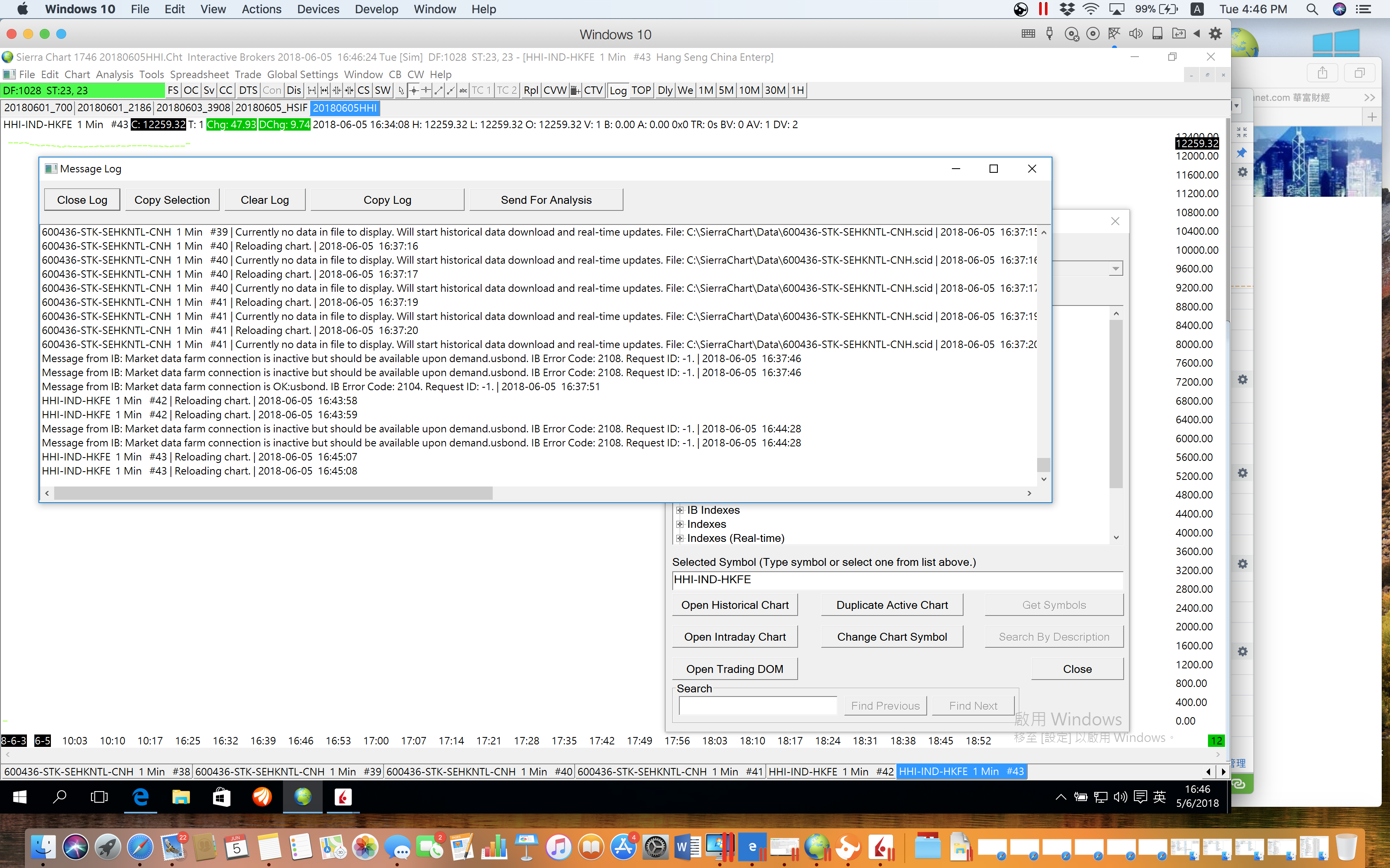 I have sent you the message log file. I can draw other Hong Kong stocks chart with Sierra. Therefore, I should be able to draw the Hang Seng China Enterprise Index and China stock. Date Time Of Last Edit: 2018-06-06 10:50:16