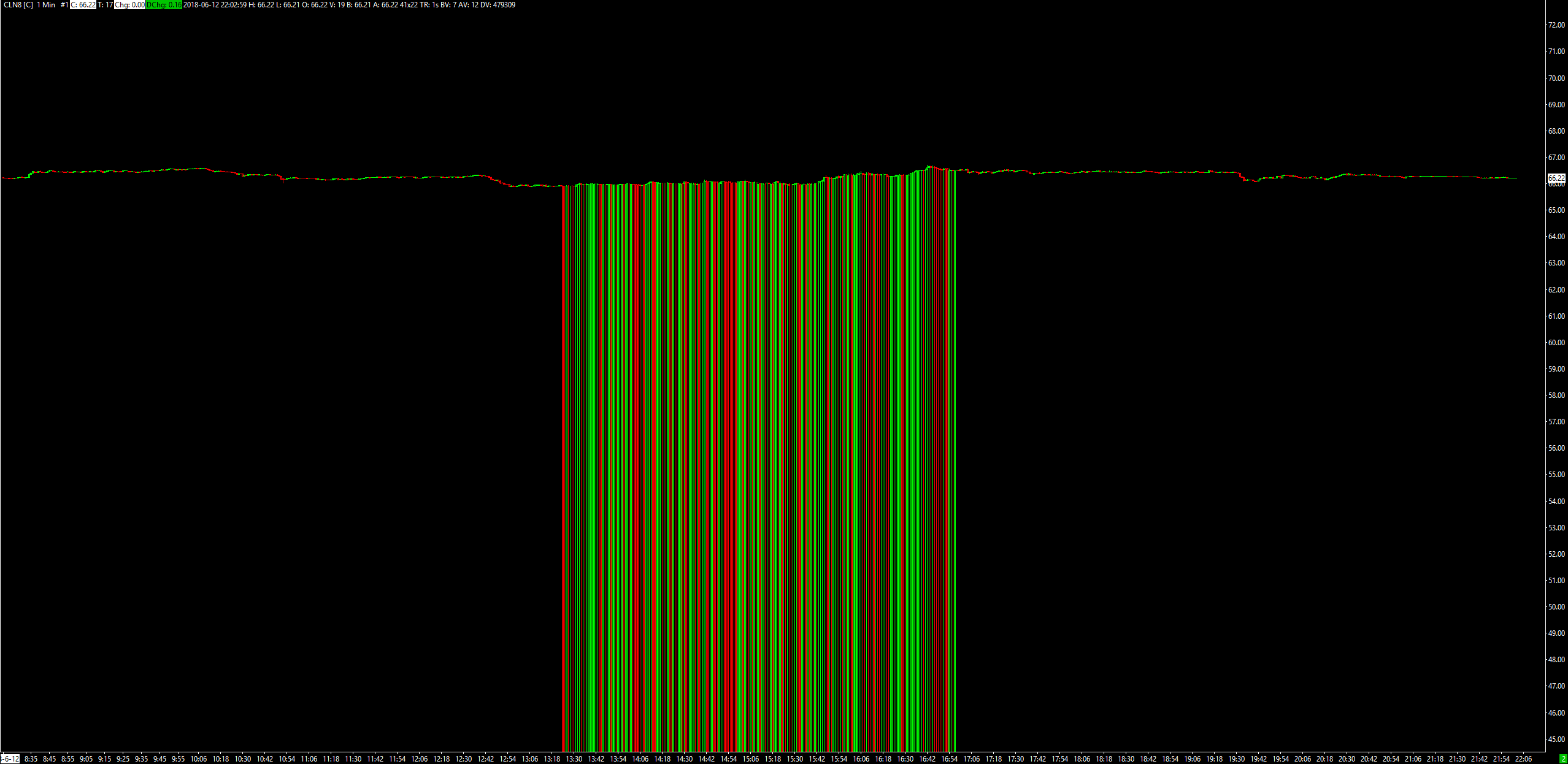 Hi, Any time I open a CL chart I get these very strange long bars: the bars are from the current CL price all the way to 1.18 and back, it does this as soon as it starts updating. I tried to delete the history, the old database for CLN8 and for a few seconds it looked okay till the first bar updates and it starts all over again. Not sure how to solve this, in the attachment you can see the output. this is now on any CL chart. the picture is from a new workbook and a new CL intraday chart, after a restart.. http://www.sierrachart.com/image.php?Image=1528804207222.png |