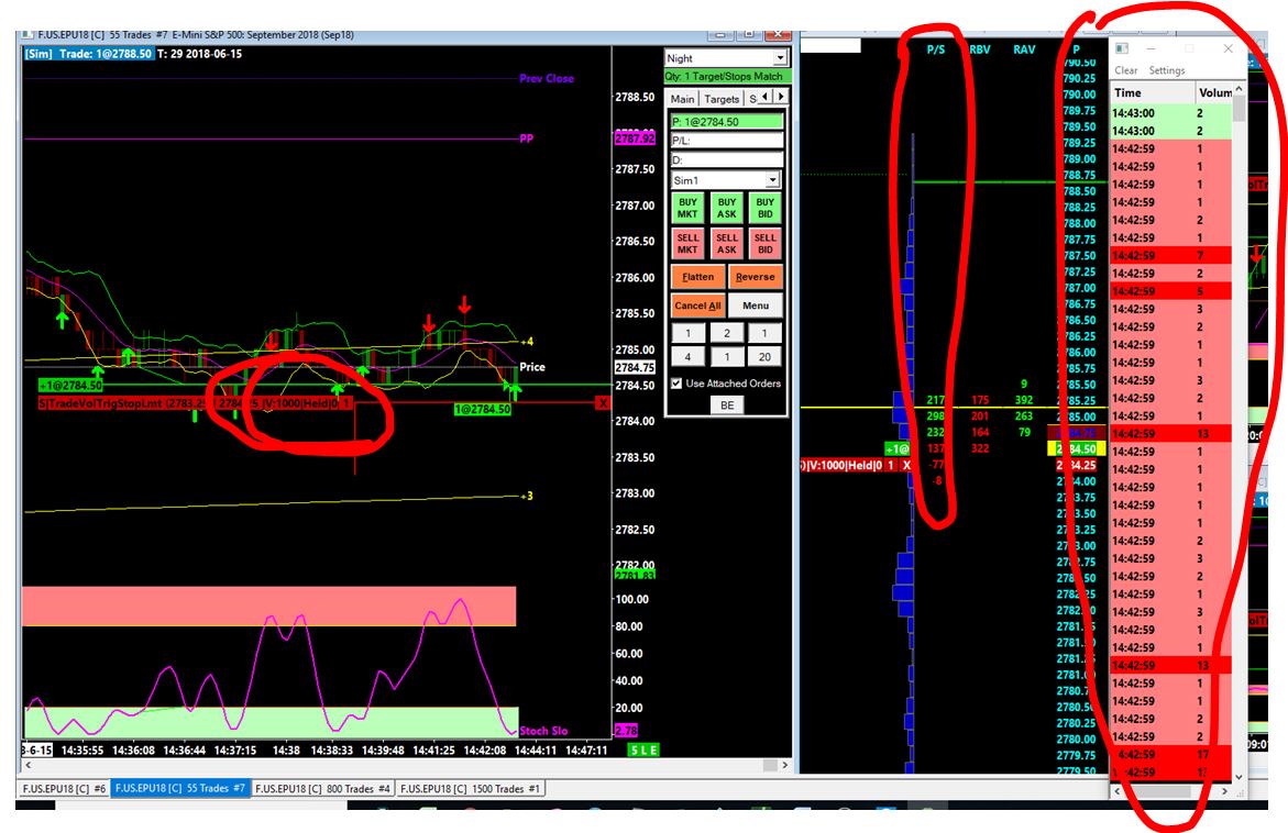 I challenge your statement. (see attached) The volume counter in the order label (circled in attached) decrements when orders are "pulled and stacked" (circled in attached), as well as Trades (circled in attached) execute. Watch /ES Set the volume variable to 1000 or more, if this counter were based on TRADES ONLY (in the time/sales), then it should take quite a long time to goto zero (0)...it does not! Watch the time/sales (slow changing) Watch also the Combined Pull/Stack on the DOM (fast changing) You will see the counter decrements based on BOTH Pull/Stack and Time/Sales, once the price is hit, the trade executes NEARLY IMMEDIATLY, not based on time/sales alone, but Pull/Stack changes and time/sales. Or ignore it... Have a great day Thanks, Mark |