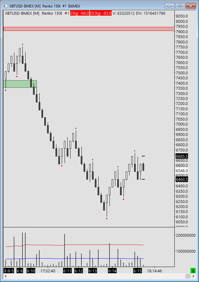 Hi, #1 Me and a friend both connected to BitMex, are trying to have the exact same Renko charts we made sure we both have the same # days of intraday data to download , same max historical 1-tick data basicly all i can think of is set the same what could cause this difference ?? #2 is it somehow possible to make sure the renko bars open/closes line up with round numbers like 6500 6650 6000 whatever thank you very much !! |