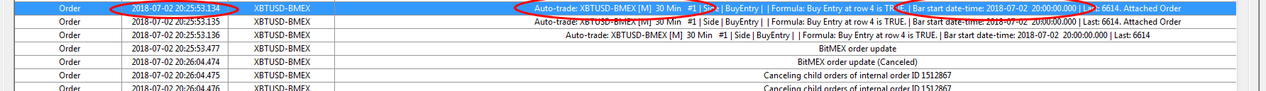 Hi, On my spreadsheet trading system i seted up option "Signal Only On Bar Close" to " YES " on both sides. So when i using 30m chart i should recieved signal only every 17:00,17:30,18:00 etc. I dont know why last day i start recieving signals on random time like 17:22, 18:12 etc. I dont know where is problem. I nothing changed. When i run backtest of my strategy from last 40 days. Every 68 orders is fine, max 1 minute different. But from yeasterday 18.06.2018 i recieved 3 signals with wrong time. Where can be problem ? |