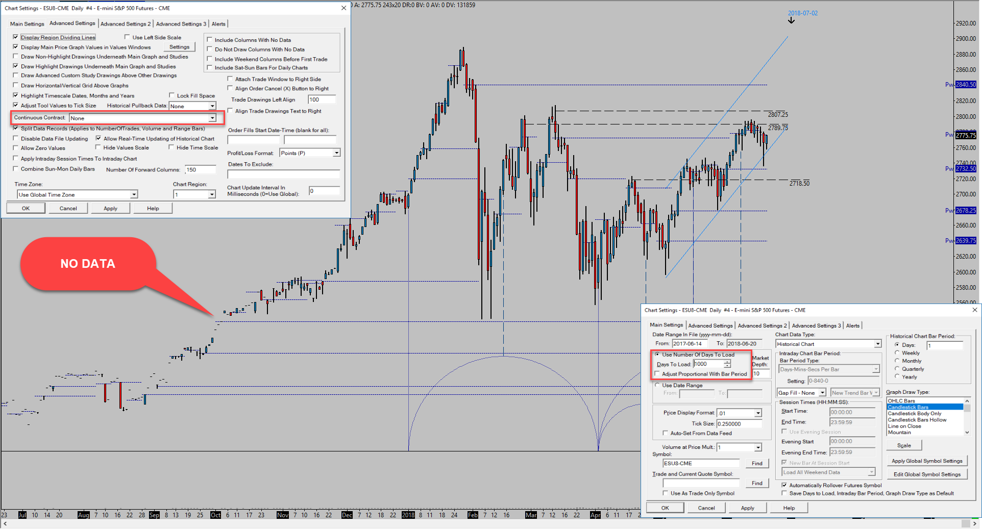 You need to follow the instructions here: Continuous Futures Contract Charts: Re-Downloading Continuous Futures Contract Data And re-download data for all contract months in the list. Sierra Chart Support - Engineering Level Your definitive source for support. Other responses are from users. Try to keep your questions brief and to the point. Be aware of support policy: https://www.sierrachart.com/index.php?l=PostingInformation.php#GeneralInformation For the most reliable, advanced, and zero cost futures order routing, *change* to the Teton service: Sierra Chart Teton Futures Order Routing |