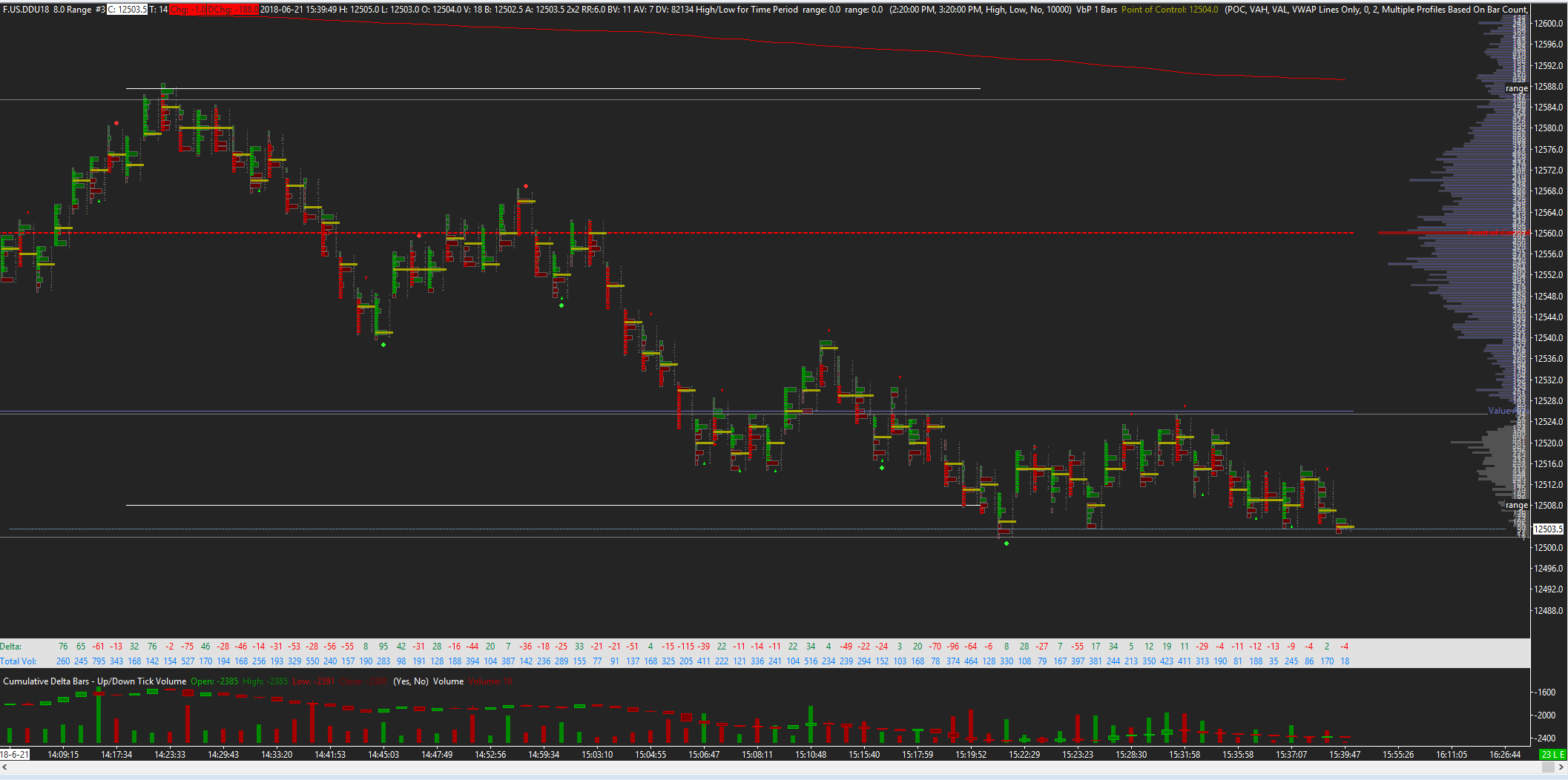 Hi Team, Currently we're unable to get the open/close to display on the Volume Profile bars, we can do this in Numbers bars but not for the VP bars. Can you please advise a way to achieve this? I am currently using the numbers bars on top of my VP bars with the prints made tiny so as not to mess up the chart, but this isn't ideal. |