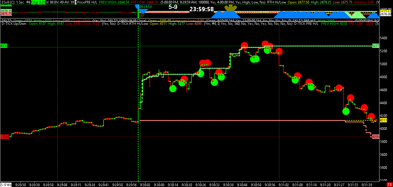 I download the latest version last weekend and noticed something wrong with a chart. I didnt change anything, but now my OHLC study is off. See attached below: This is a 1 second chart. Session start at 9:30-17:00, Study parameters are "Use Day Session", and "Display on Day Session only". The scale is set to Independent, it was set to Automatic, but neither fixed the issue. This is the OHLC study of "Cumulative Delta Bars" of the "Up/Dwn tic". You can see the Light Green (represents HOD RTH[stairstep]. The Light Red represents the LOD (RTH). You can see they are off. This happened when downloading the latest version. It seems only when the PRE Day Session is in view that this scale values are screwed up. What can be causing this? Thx http://www.sierrachart.com/image.php?Image=1529600266161.png |