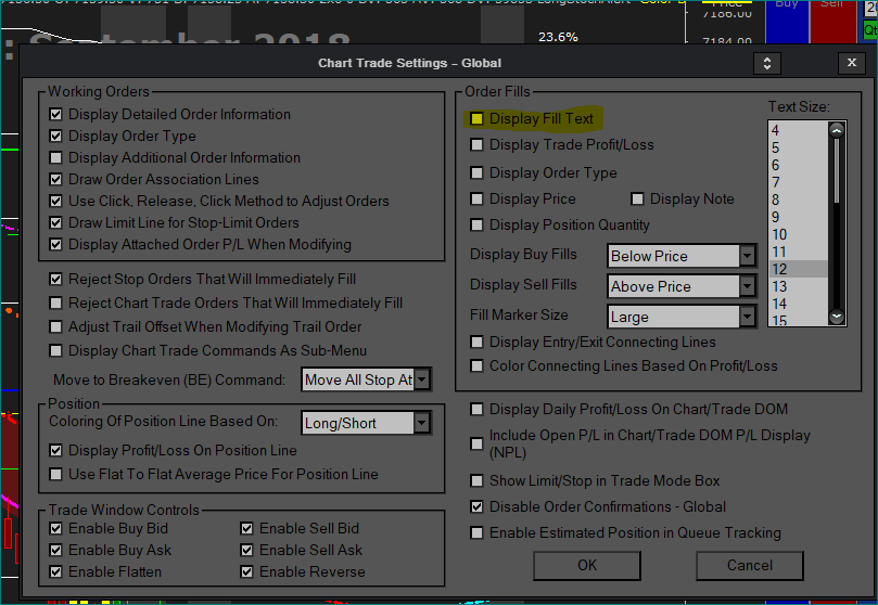 If you want those labels for actual Fills you can add those via the Global Settings/Chart Trade Settings menu. Control the fill size and information in the right side (see attachment). If you want those labels on an alert but not a fill, I'm not sure how to accomplish that. -- Scott |