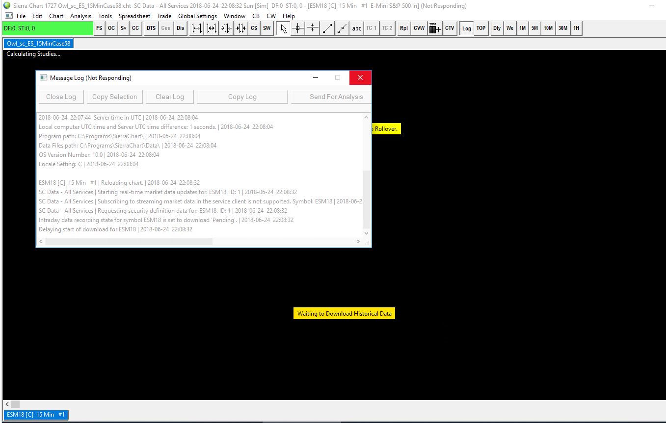 Hi, I am transferring SC to a new Win10 computer and I run into issue where the SC hangs up when I try to open chart. The chart opens fine on my other computer which is win 8.1. Any idea what could be wrong? thank you Josef Date Time Of Last Edit: 2018-06-25 23:16:28
