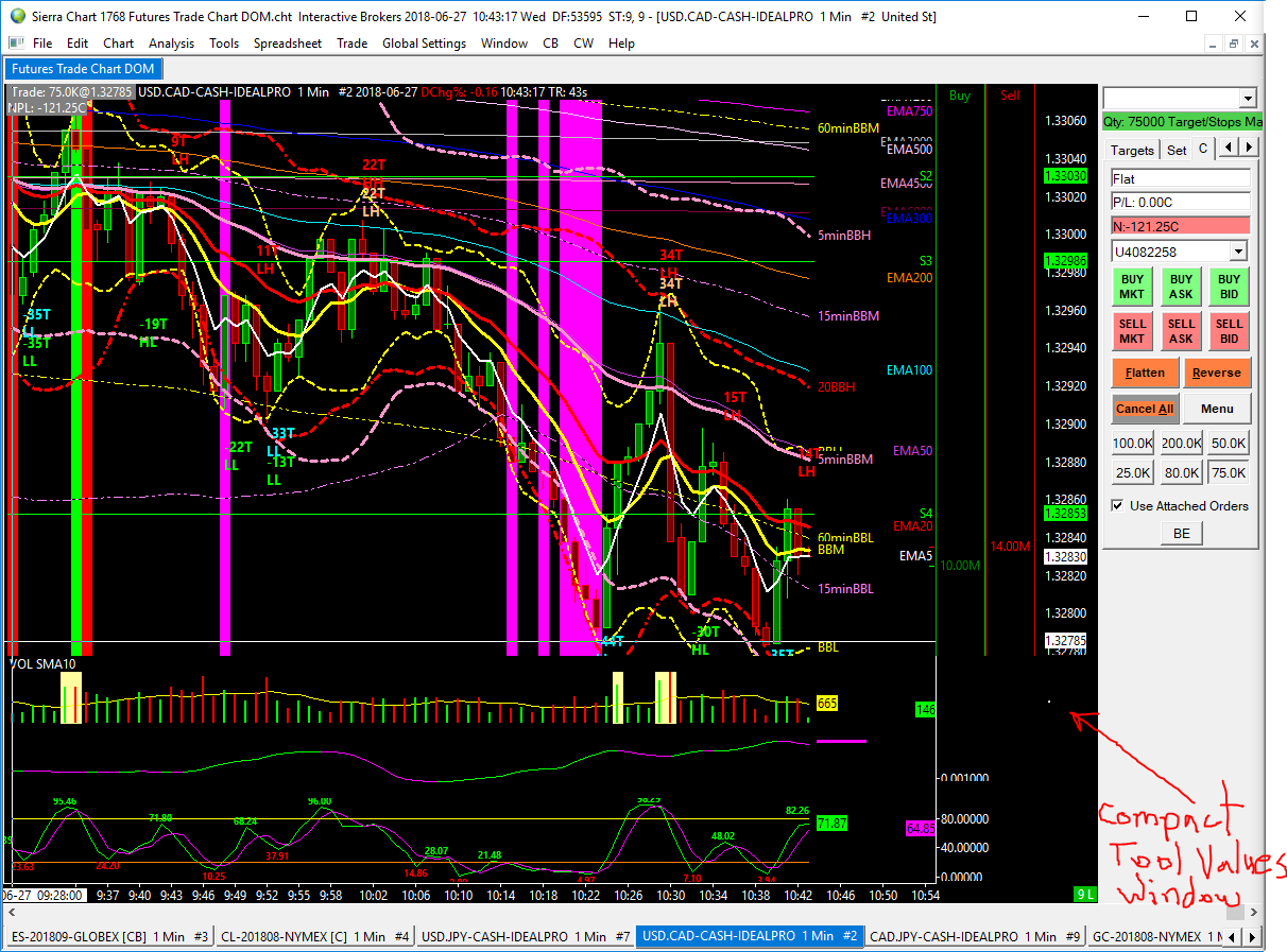 Hello, My hand tool no longer moves my chart. I can move it up and down using the values scale and I can move it left and right using the arrows on my keyboard, but unexpectedly, the hand tool stopped moving the chart. I have been doing so for many years. Also, my Tools Values Window is no longer showing any values, and my Compact Tools Values window is reduced to a tiny white dot. Thank you. Date Time Of Last Edit: 2018-06-27 14:46:59