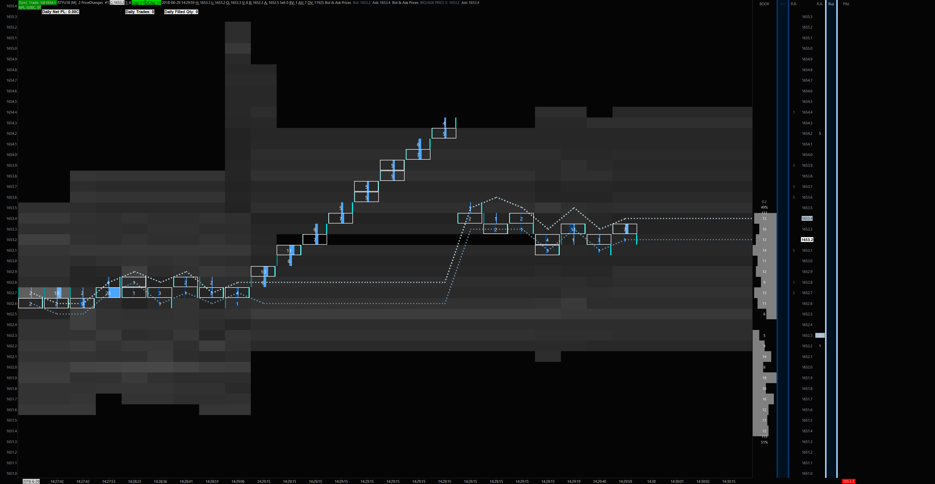 The issue: I experienced something on RTYU18 symbol at CET+1 14:29:15 on the 29th June (on SC Real Time Exchanges Data Feed, Simulation Mode), for what I do not find any logical, reasonable explanation and I consider it as a weird phenomenon. Please help me understand what has just happened here. A series of aggressive market order volumes appeared from the above mentioned moment, far above the ask price and these market order trades did not change the ask/bid price. Ask/bid was plotted elsewhere. Like there was some issue with the data feed or internet connection or data processing at this time or maybe its an illegal Wast Trading? Attached there is a clean screenshot of this weird moment: http://www.sierrachart.com/image.php?Image=1530278499576.png Also, here is a several minute long .gif screen recording of it (in replay mode): https://1drv.ms/u/s!Amiq8lkZrPuytXMKfPO7-N6tPACA Date Time Of Last Edit: 2018-06-30 17:20:23
