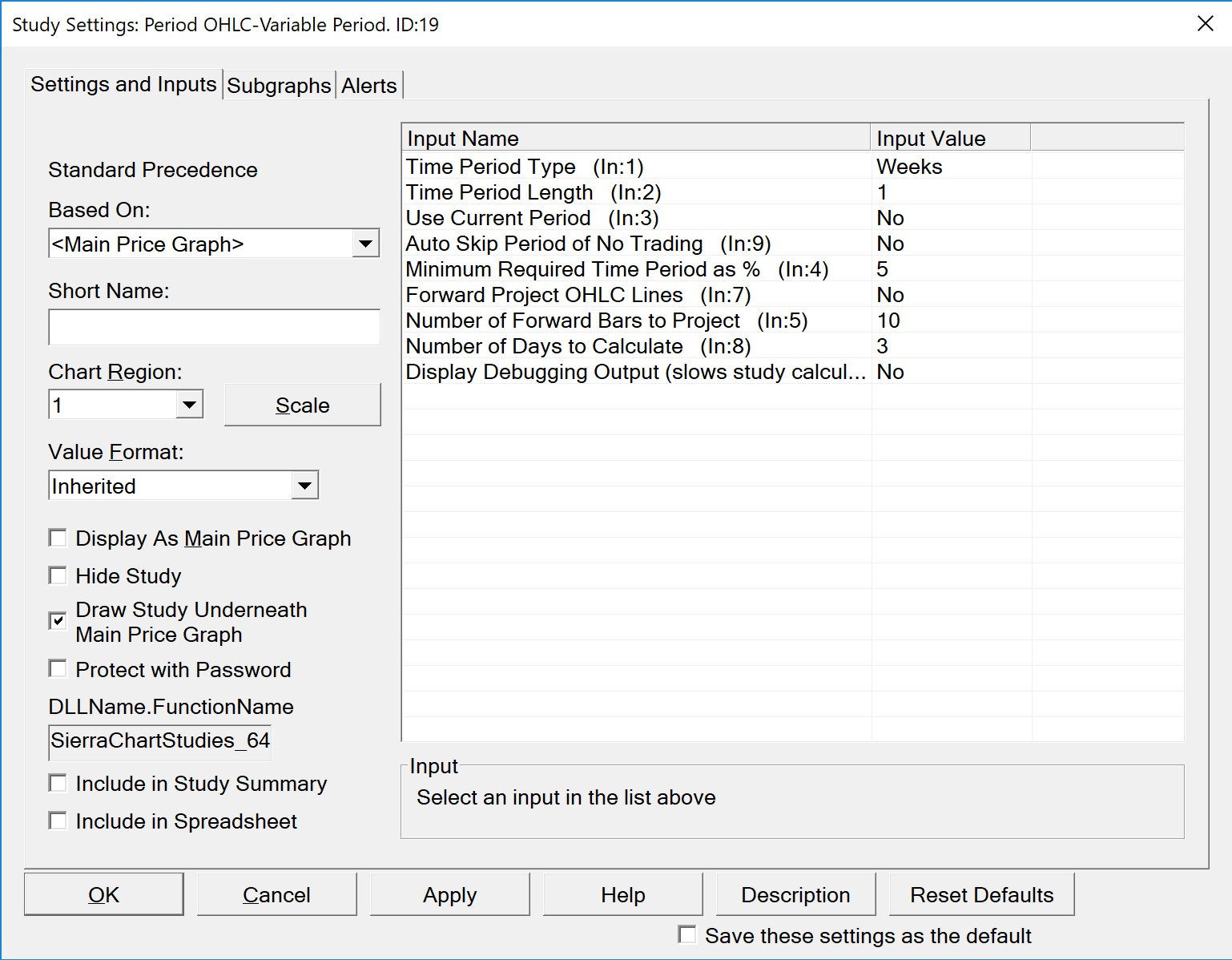 That image is too complicated. It is not useful to us. Tell us the first 4 Input settings for that study. Here is an example of it with a weekly period: http://www.sierrachart.com/image.php?Image=153073199190.png Sierra Chart Support - Engineering Level Your definitive source for support. Other responses are from users. Try to keep your questions brief and to the point. Be aware of support policy: https://www.sierrachart.com/index.php?l=PostingInformation.php#GeneralInformation For the most reliable, advanced, and zero cost futures order routing, *change* to the Teton service: Sierra Chart Teton Futures Order Routing |