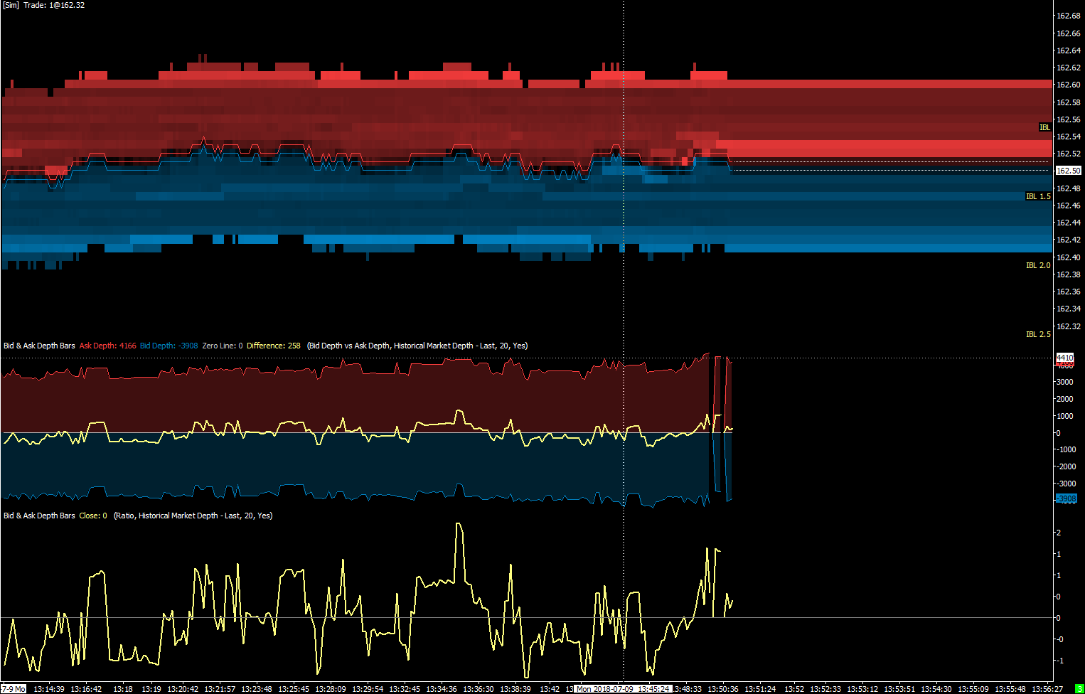 Hi, I have the bid & ask depth bars study in a chart of bid/ask lines (3 seconds). If you look at the chartregion 2 and 3 it drops data. Any ideas? http://www.sierrachart.com/image.php?Image=1531137065667.png |