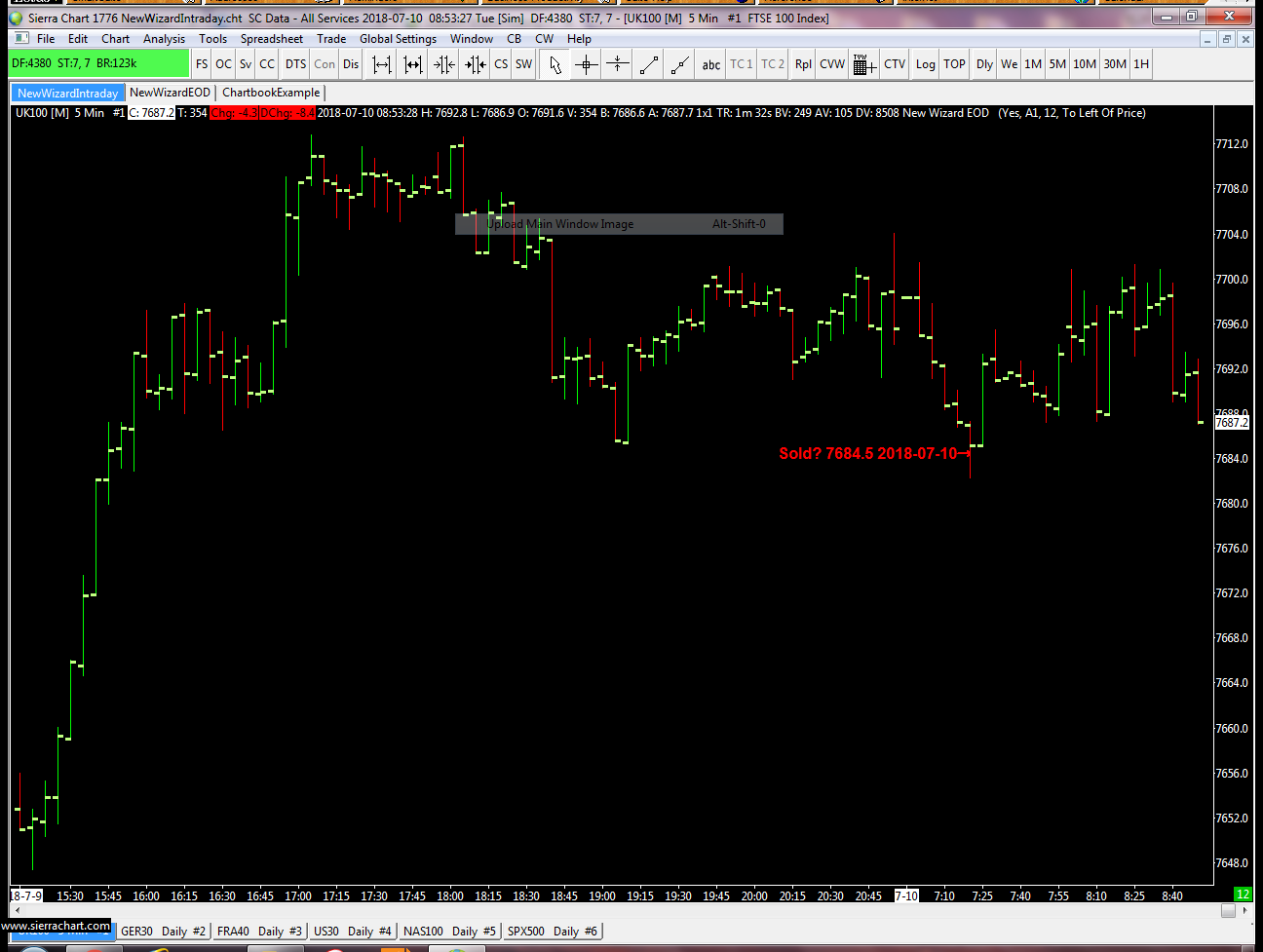 http://www.sierrachart.com/image.php?Image=1531209211792.png Hi. I have been using the Ian Williams Index Trading Wizard successfully since I installed last Wednesday with multiple trades activating. As of yesterday (Monday) on both my home and work PC there are now next to no trades showing and the one that did activate (as per screenshot) doesn't show stop loss etc. I have updated the software and it does show all history as being updated. Hope you can help. Cheers John |