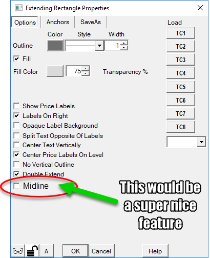 If Show Price Labels is checked, should Draw Midline also have its price shown? If not, would you please add an option to show the Midline Price Label? Date Time Of Last Edit: 2019-04-03 12:27:25