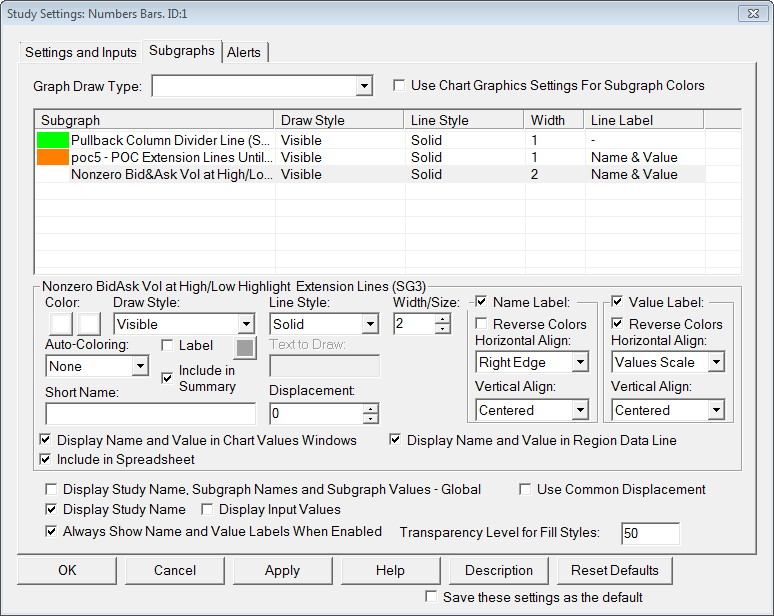 Hi Team I'm not able to have the Number Bars POC extension line Name And Value displayed, I have set the poc to be displayed and the end of the extension line and the value on values scale but it does not work. And friendly speaking it never works but I hop that with new release it will be fixed but it is not.While the non zero line extension works for the values and not for the name. Atteched find the chart and the relative settings. Thx |