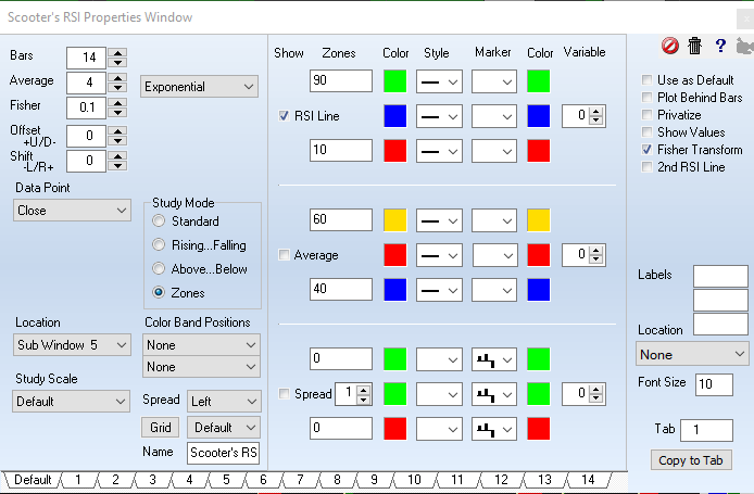 I'm switching from another charting software to SC and am in the process of recreating the indicators. I have an RSI with IFT in my original software (screenshot below - RSI properties.png) and found a similar study in SC but not sure where to put the Fisher field value in SC (sc.png) (0.1 - if I increase it to 0.2 it is less smooth), any ideas how to get exactly the same properties of the study, thanks.