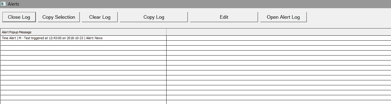 In version v1825 this still does not seem to be working correctly. When a time alert triggers it now brings up the Alert Log window (see attached Alert1) even though the time alert is configured to show the Popup window and not the Log window (see attached Alert2). Thanks |