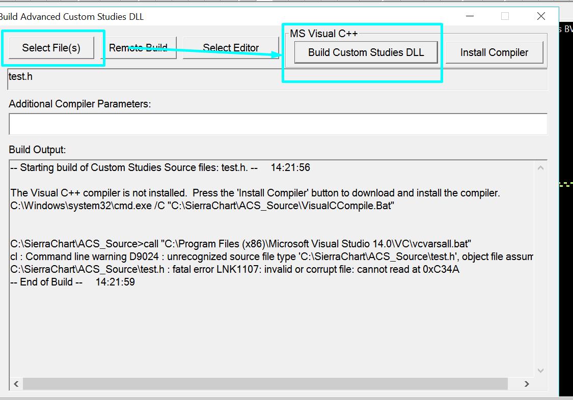 Select your .cpp file as Andreas said above. Then select Remote Build and if your .cpp file is correct you'll get your .dll file built and added to your SC Data folder. See my attachments below --> -- Scott |