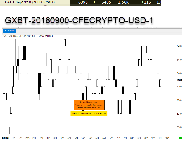 I wanted to trade GXBT clearing with IB. GXBT-20180900-CFECRYPTO-USD-1 is the symbol i got from the sierra symbols finder. I am getting "symbol is unknown, invalid value in field #541". The chart backfills but is not realtime nor will a DOM come up. I am provisioned on the IB side and able to place trades on their platform for it. I also have the sierra futures data feed enabled on this account. |