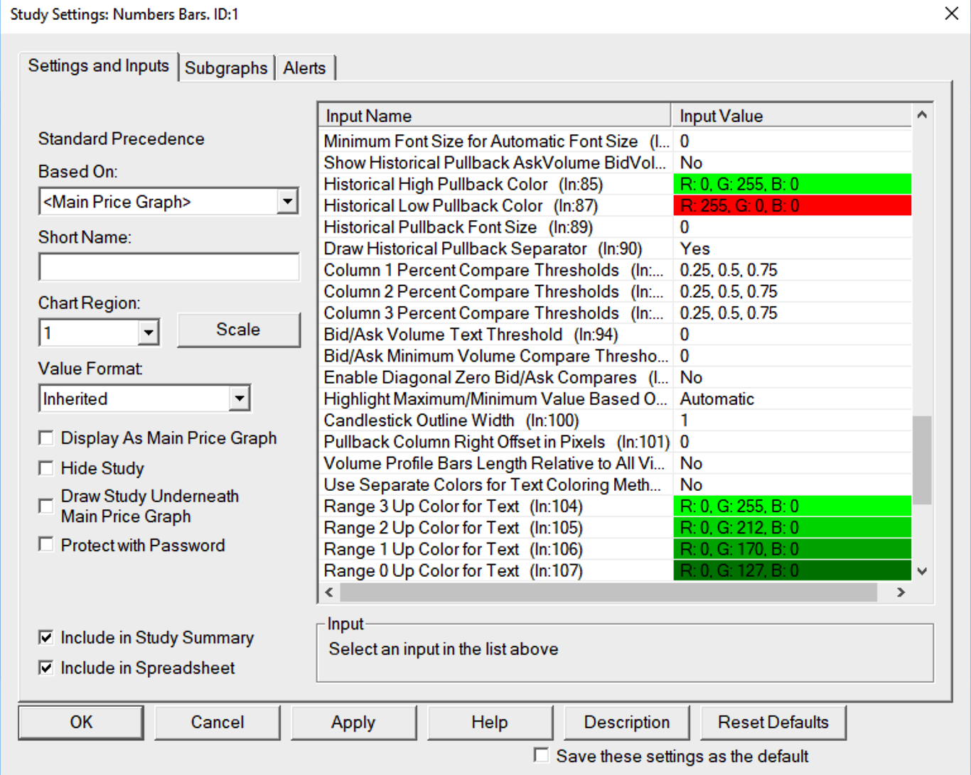 Weird but perhaps? Everytime I restart my Sierra Charts it resets the Numbers Bar - Column 1 Percent Compare Thresholds settings back to default 0.25, 0.5, 0.75. (I'm trying to keep it at 4,4,4). Also, I have a correlation chart with four equities futures and on restart it takes the symbols settings out of the symbol field in ID1 and leaves it blank. Weird... and annoying to have to reset every time. |