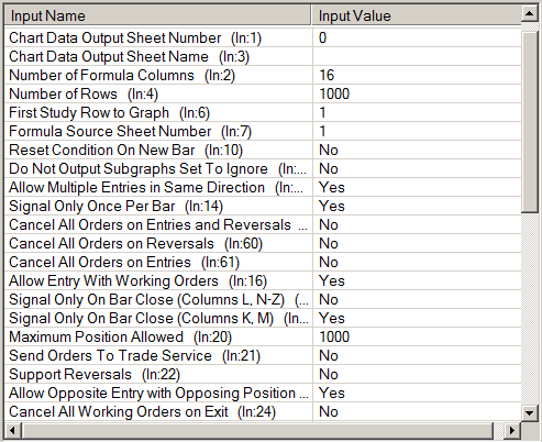 1) For close-of-bar entries, formulas in column J should reference row 4: J22: =C4+1 J24: =D4-1 ('Signal Only On Bar Close' only affects Formula Columns). 2) Try the spreadsheet study settings in the attached pic. |