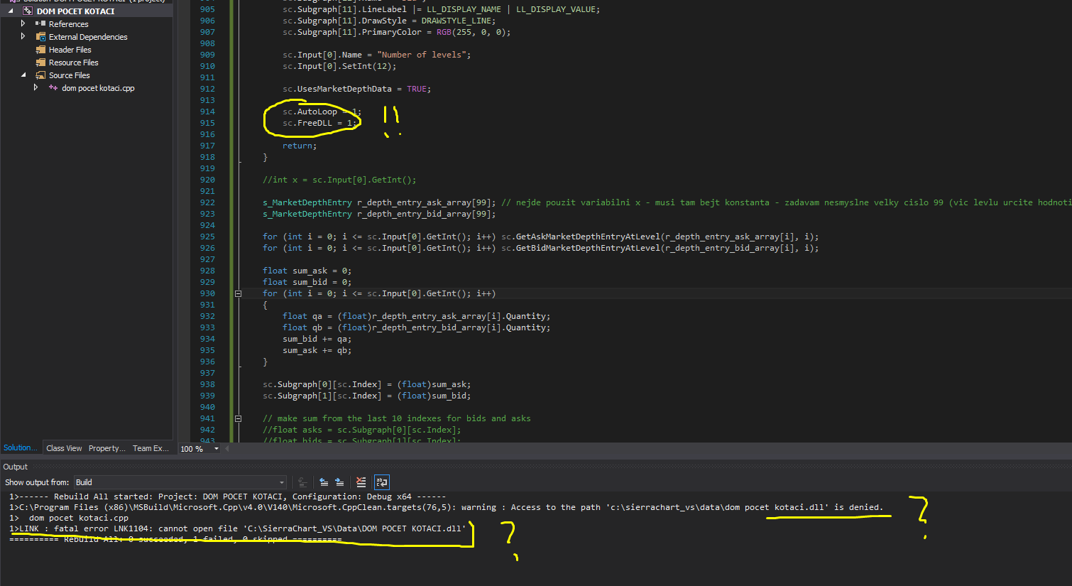 Therefore, you just use this command before you start the external build of the DLL files: Analysis >> Build Custom Studies DLL >> Build >> Release All DLLs and Deny Load And then you allow the loading with Analysis >> Build Custom Studies DLL >> Build >> Allow Load DLLs Sierra Chart Support - Engineering Level Your definitive source for support. Other responses are from users. Try to keep your questions brief and to the point. Be aware of support policy: https://www.sierrachart.com/index.php?l=PostingInformation.php#GeneralInformation For the most reliable, advanced, and zero cost futures order routing, *change* to the Teton service: Sierra Chart Teton Futures Order Routing Date Time Of Last Edit: 2021-02-01 15:48:22