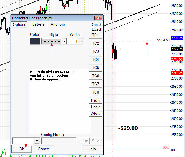 Hi, This post is a FYI and not a complaint. I downloaded pre-release 1821/ Alternate is available as a choice for Peaks and Valleys. When you hit apply the line disappears. It is also available as a choice for horizontal line. It also disappears. (Snapshot enclosed) Would be nice to have as a Grid choice as well. Also a choice for the quick choice for horizontal line pop up window. Thanks |